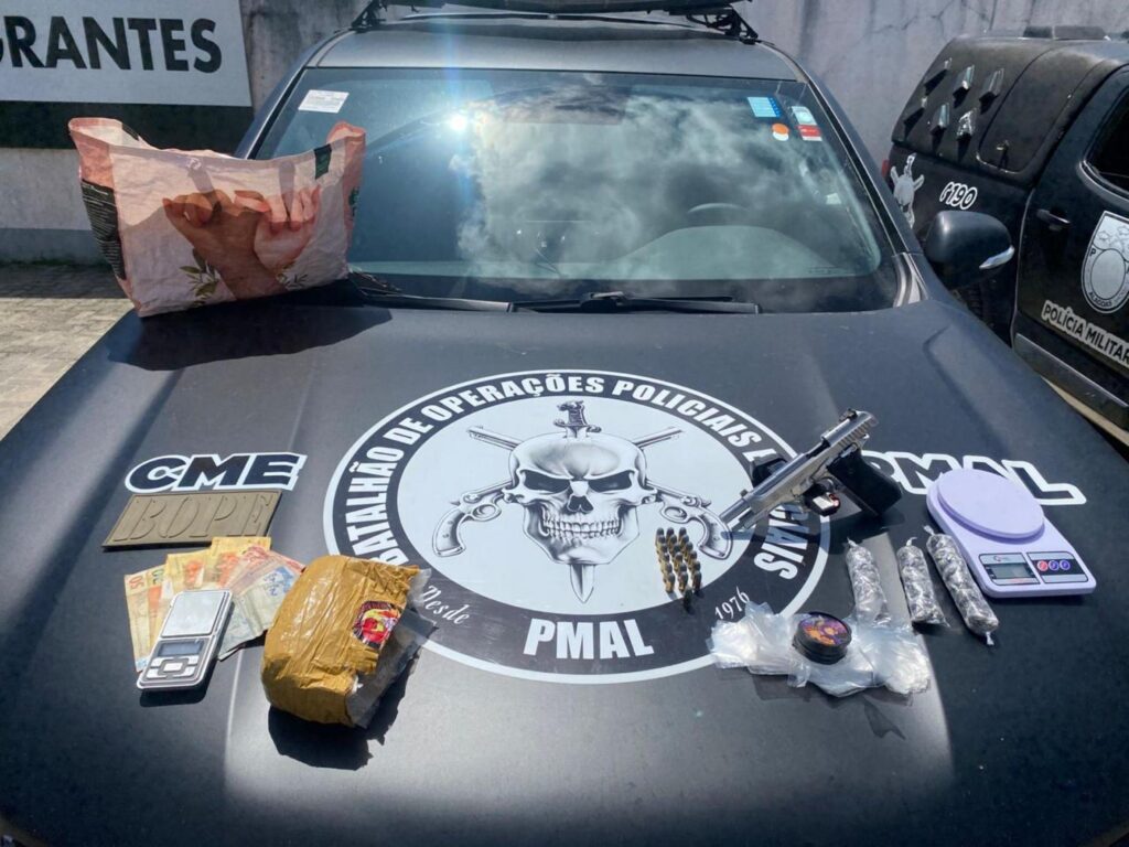 Militares do Batalhão de Operações Policiais Especiais (Bope) prenderam, na manhã desta sexta-feira (26), um homem com uma arma de fogo, drogas e dinheiro durante a operação Círculo de Fogo II, na região conhecida como Favela da Muvuca, atrás do Papódromo, no bairro Trapiche da Barra, em Maceió.