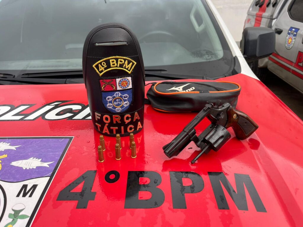 As guarnições Força Tática I e II estavam em patrulhamento pela localidade, quando avistaram o indivíduo tentando fugir e se desfazer de uma sacola plástica. O homem foi alcançado e abordado, sendo flagrado com um revólver de calibre. 38 e seis munições intactas.