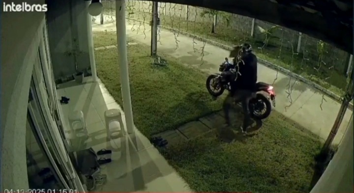 O assalto na parte alta de Maceió foi registrado por uma câmera de segurança, mas o vídeo só começou a circular na internet nesta segunda. As imagens mostram a dupla armada chegando em uma motociclista, arrombando a porta da casa e entrando no imóvel.