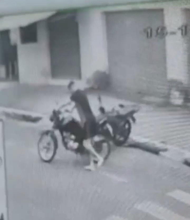 O crime foi flagrado por câmeras de segurança. As imagens mostram o homem tentando ligar a motocicleta. No entanto, ao não conseguir, ele leva o veículo a pé, empurrando a motocicleta.